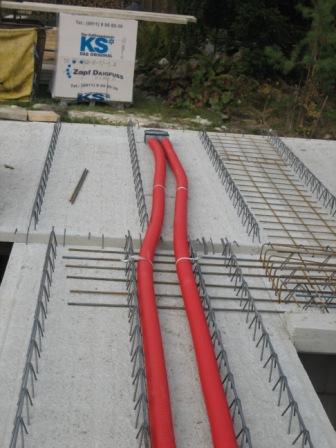 - Verlegung der Lüftungsleitungen auf der Rohbetondecke